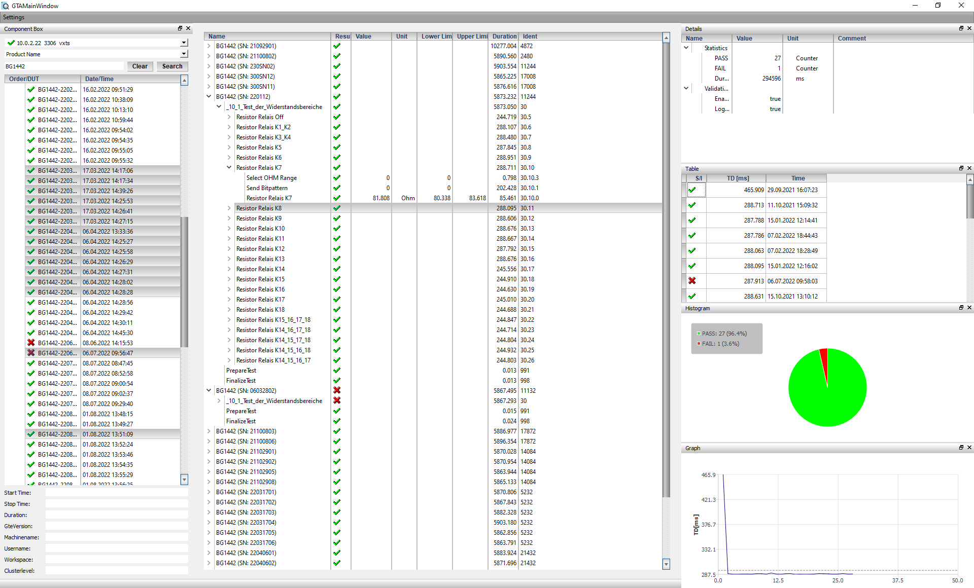 The GTanalyzer is our software for test data analysis and repair support. Thanks to the GTanalyzer, you identify critical measurements and recognise statistical correlations. For this purpose, you can perform a search according to different criteria, load the corresponding test reports and then analyse them. Access to several databases is obvious.